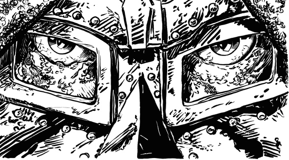 I\m not sure Doom's right eye has that many folds in his tear duct, Craig. You might want to make some decisions about how shadows fall on different surfaces. When you shade metal the same as skin it dulls the image. Try some solid black occasionally. All of your shadows have streaks of light (white) going through them. A good way of creating different looks on different textures is using different shadow patterns. Lastly, you might want to use the white line "halo" effect more sparingly since almost every shadow has a white line around it. Trust the viewer to see where shapes end and begin without the halo.
